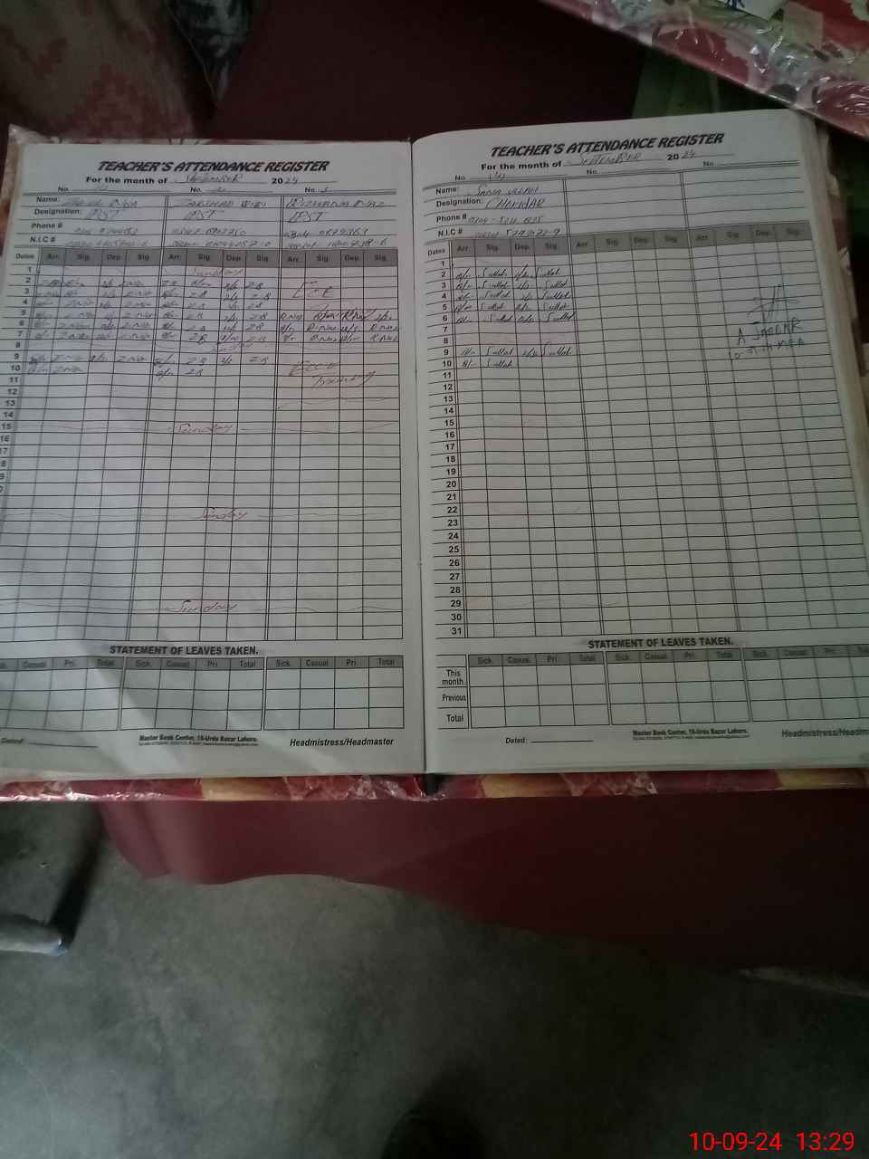 | Total no. of Classrooms: 3 No. of Classrooms Used for Teaching: 3 No. of Classrooms Storing Old Furniture, FTBs, etc: 0Comments if Any: PST teacher Zaibulnisa physically present but her name not in mea tab temporarily added |