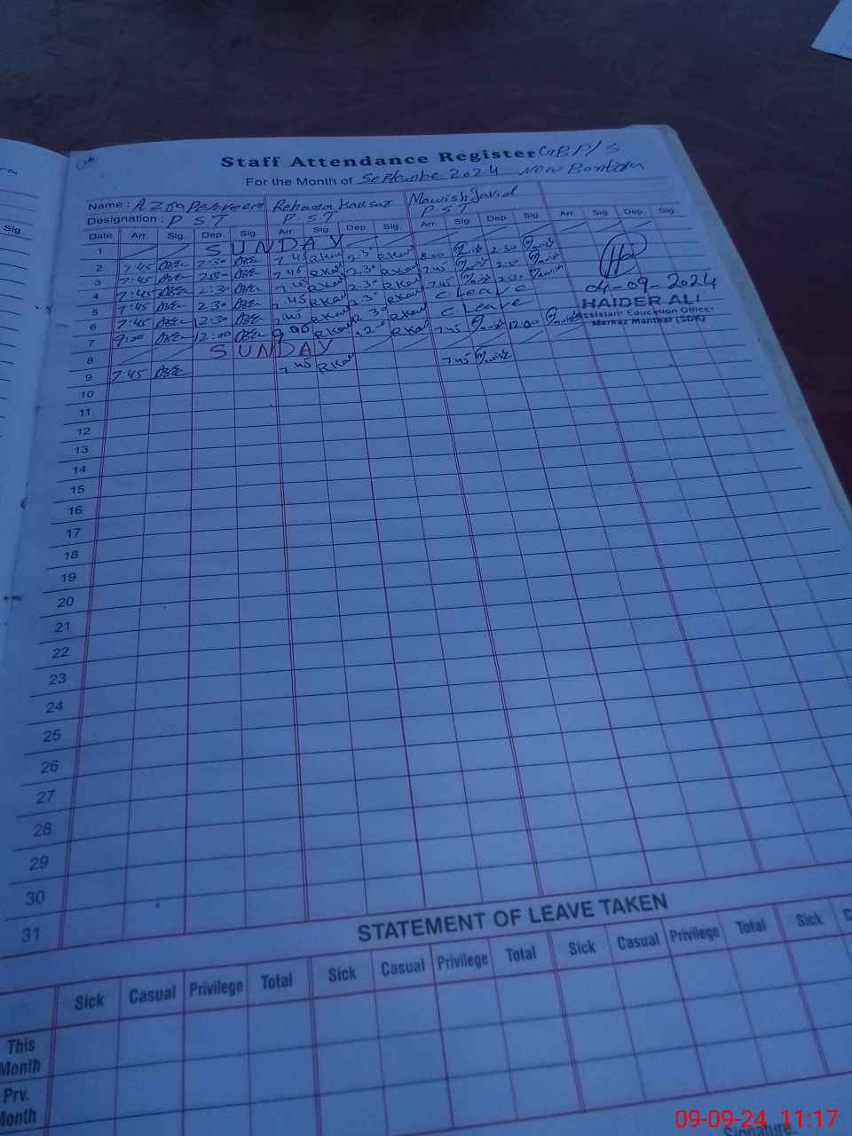 | Name: Az**** Pa**** Designation: (School Headmaster's/Headmistress's) PST Phone/Cell Number: 03**** |