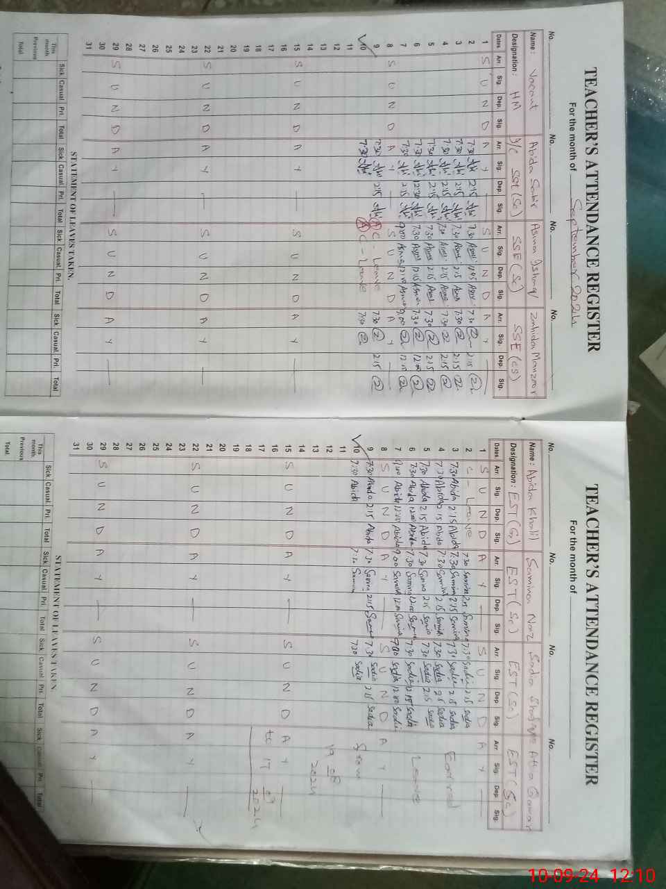 | Remarks (Use Separate Page if Required): ASMA ISHAQ SST SC FOUND UN AUTHORISED FROM DUTY NO PROOF OF CASUAL LEAVE ON HRMS LEAVE NOT APPLIED ON 09 SEPTEMBER 2024 AND 10 SEPTEMBER 2024 FTF RECORDS ARE NOT MAINTAINED LESSON PLANS ARE NOT AVAILABLE RANDOM CLASS TWO IS NOW IN CLASS FIVE ONLY ONE HAND WASHING POINT IS WITH SOAP REMAINING ALL POINTS ARE WITHOUT SOAP TOILETS ARE NOT CLEANED | |||||