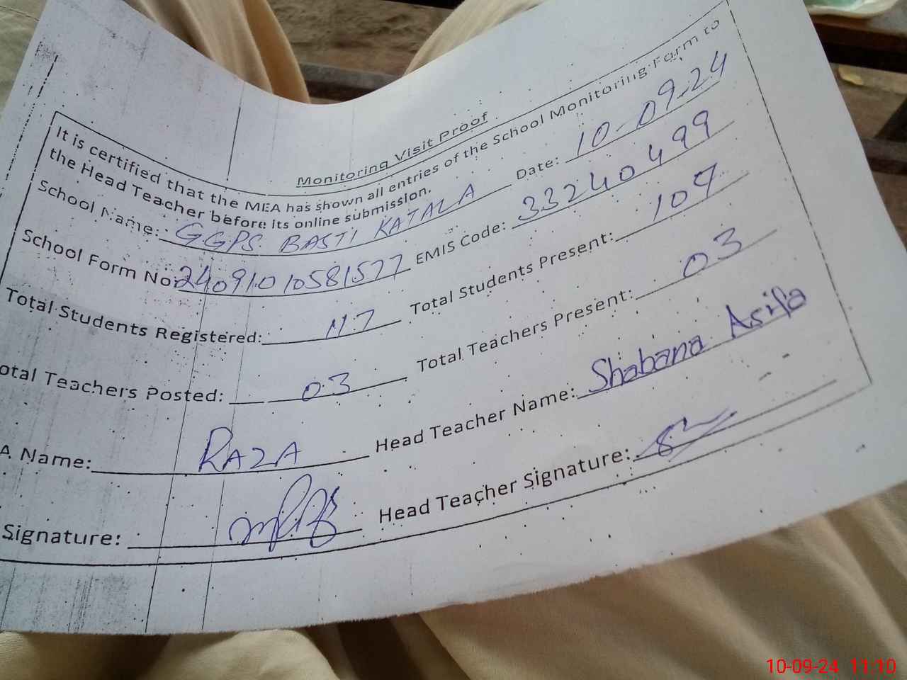 | EMIS Code: 33240499 | Name of School: GGPS BASTI KATALA | |||