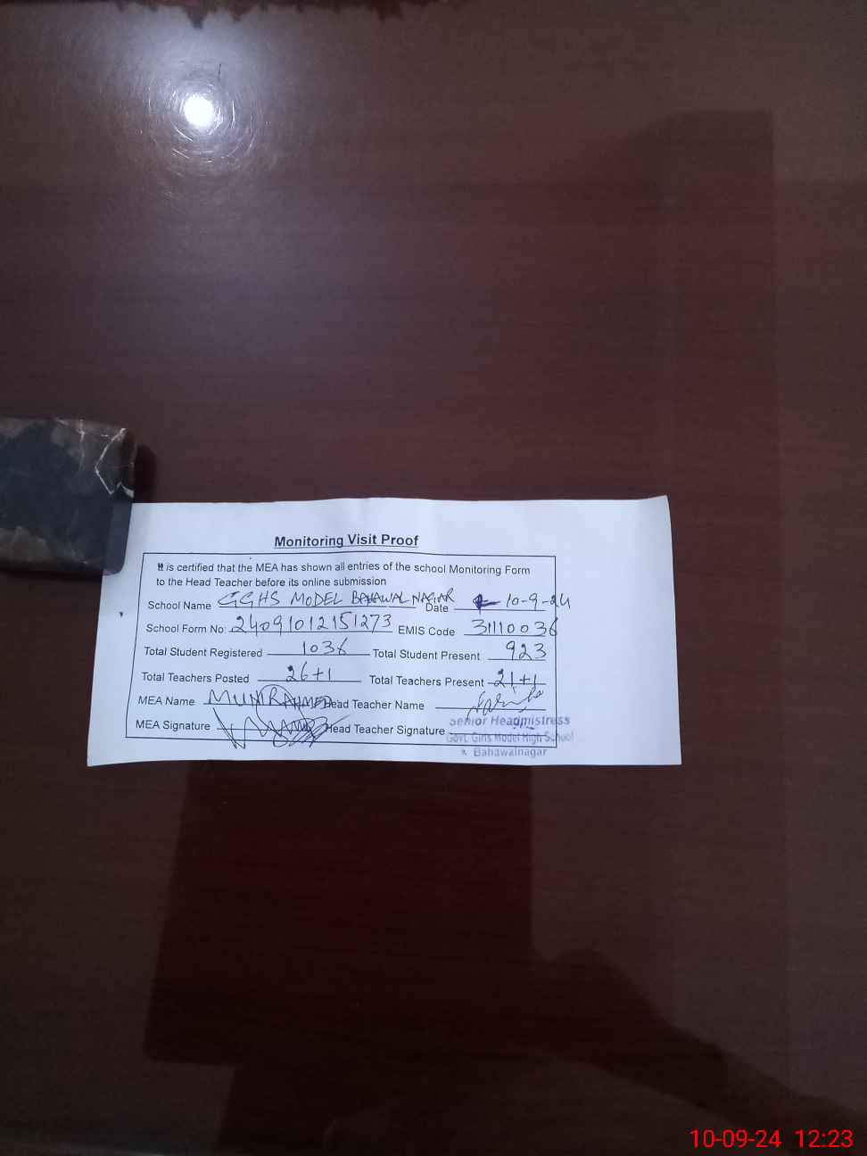 | EMIS Code: 31110036 | Name of School: GGHS MODEL BAHAWALNAGAR | |||