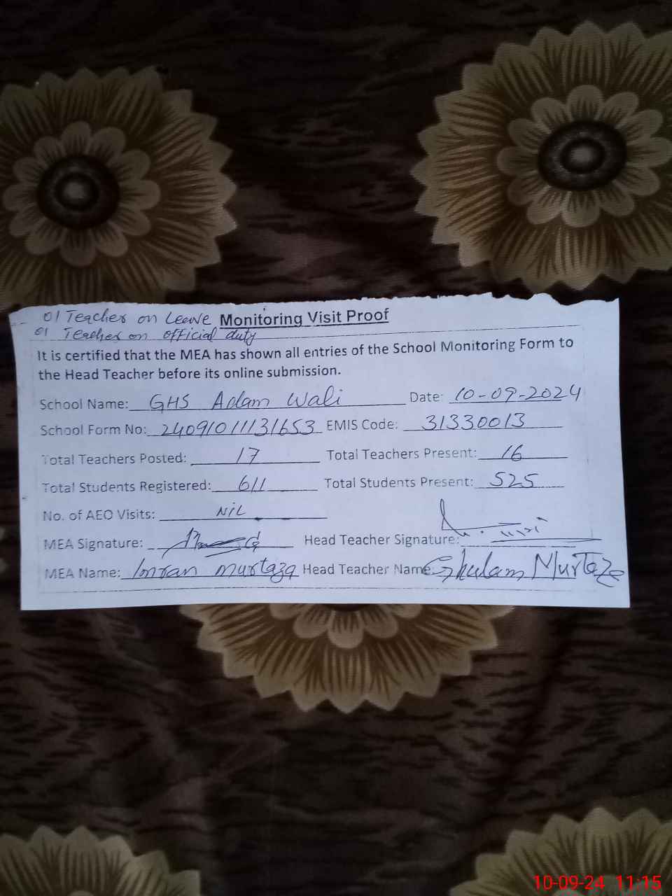 | EMIS Code: 31330013 | Name of School: GHS ADAM WALI | |||