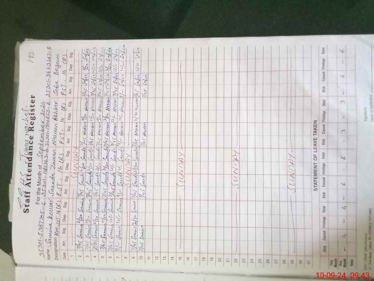 | Name: Sa**** Za**** Designation: (School Headmaster's/Headmistress's) EST IC HM Phone/Cell Number: 03**** |