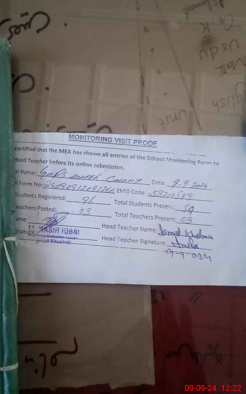 | EMIS Code: 38210589 | Name of School: GMPS AHEER COLONY | |||