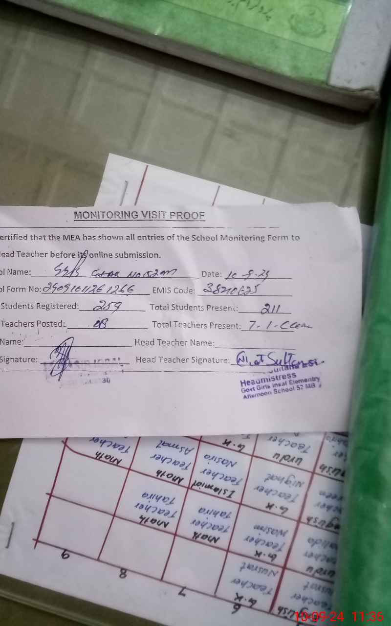 | EMIS Code: 38210625 | Name of School: GGES CHAK NO 52 MB | |||