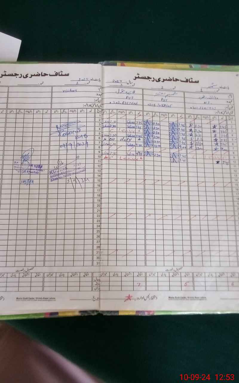 | CNIC | Full Name | Designation | R/C | Absence During Last Calender Month |