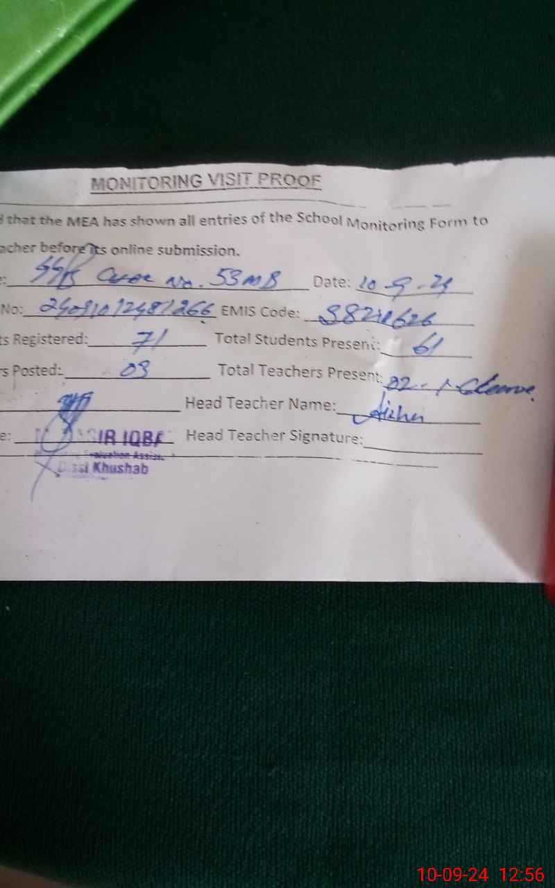| EMIS Code: 38210626 | Name of School: GGPS CHAK NO. 53 MB | |||