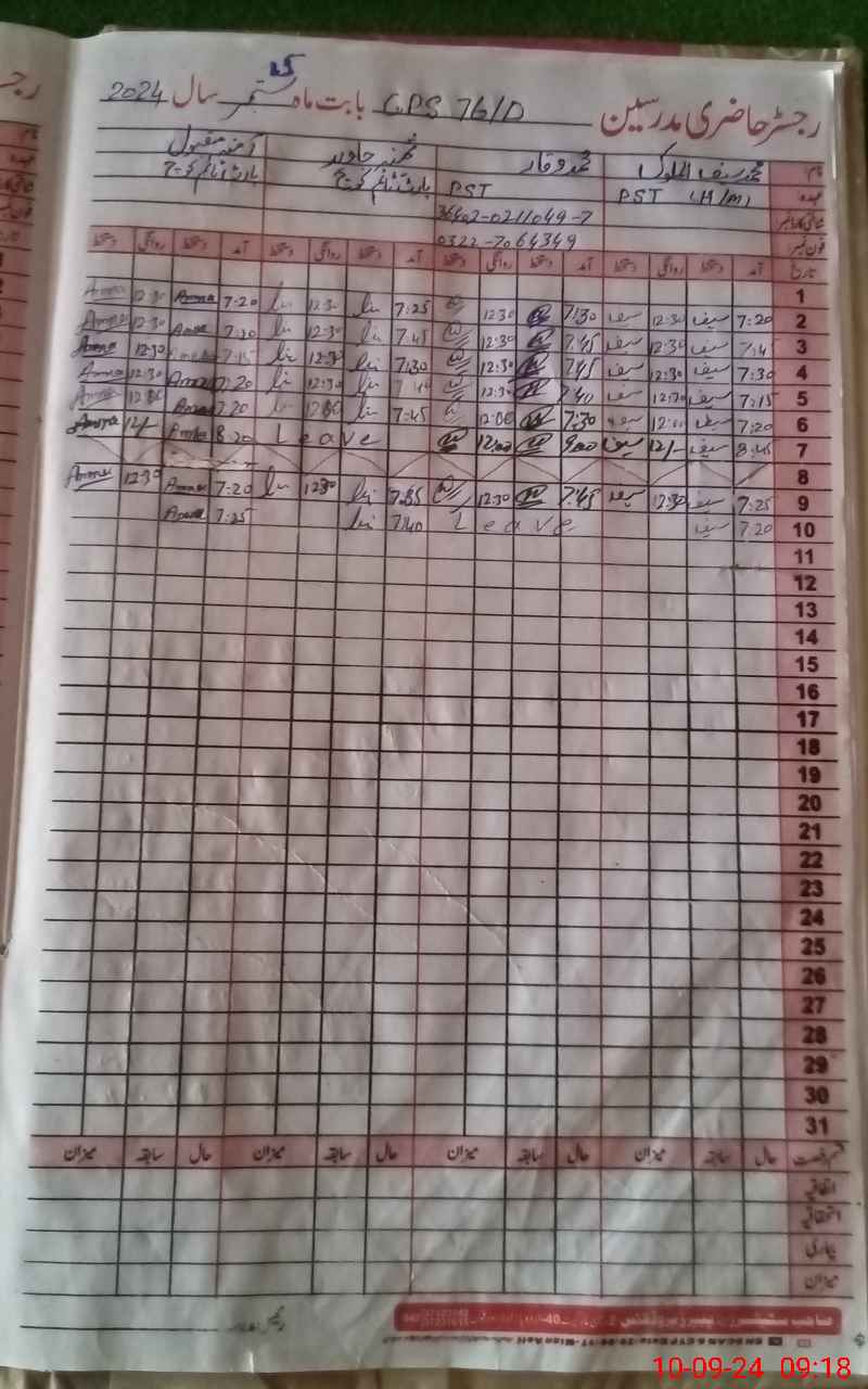 | Name: Mu**** Sa**** UlMa**** Designation: (School Headmaster's/Headmistress's) PST Phone/Cell Number: 03**** |