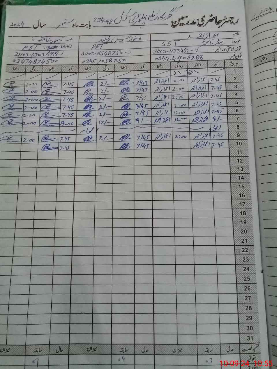 | Name: EJ**** AH**** Designation: (School Headmaster's/Headmistress's) S.S.T.(G) Phone/Cell Number: 03**** |