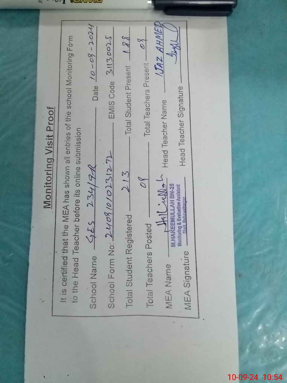 | EMIS Code: 31130025 | Name of School: GES CHAK 234/9-R | |||