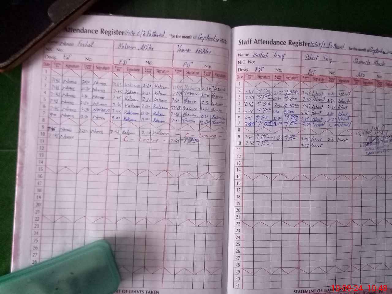| Leave | Duty | Absent | Maternity | Medical | Ex- Pak |