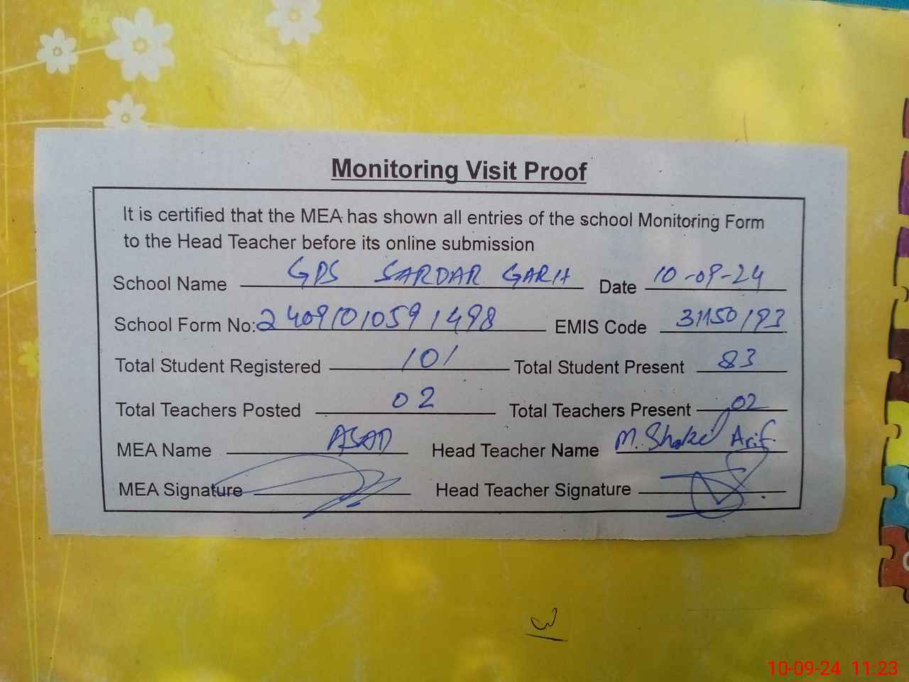 | EMIS Code: 31150193 | Name of School: GPS SARDAR GARH | |||
