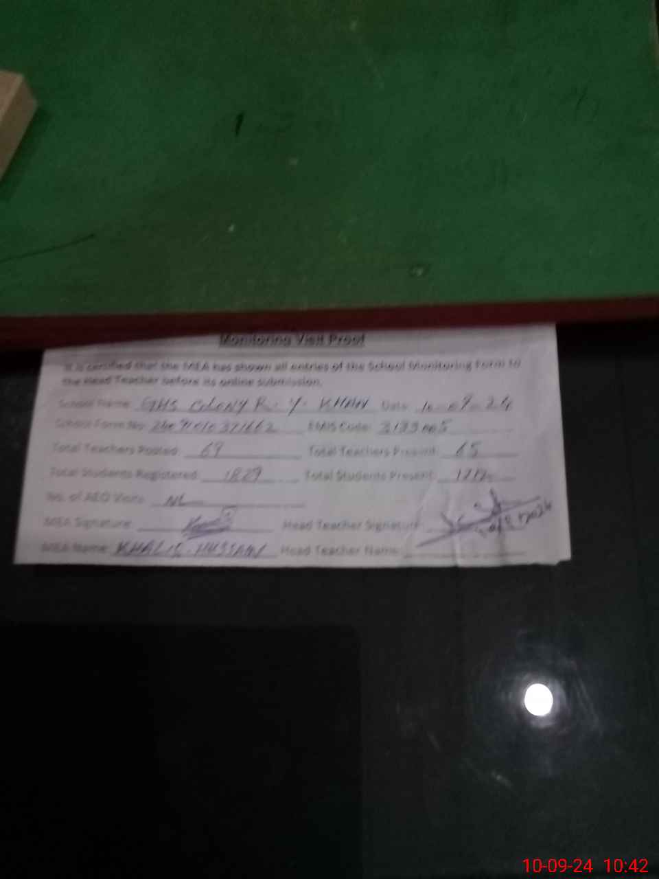 | Certified that this School was Inspected by the Undersigned MEA/DMO Today and the Information Stated Above is as Per Record. | |||||