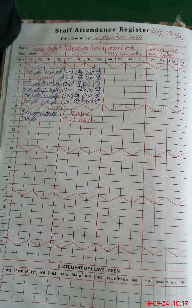 | Leave | Duty | Absent | Maternity | Medical | Ex- Pak |