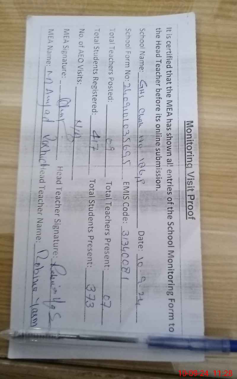 | Certified that this School was Inspected by the Undersigned MEA/DMO Today and the Information Stated Above is as Per Record. | |||||