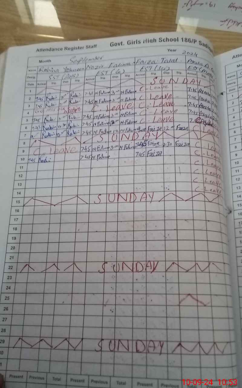 | 34**** | Ma**** Kh**** | 2 | 1 | 0 | 16 | 0 | 0 | 0 | 0 | 0 | 1 | Absent (Un-Authorized) | |