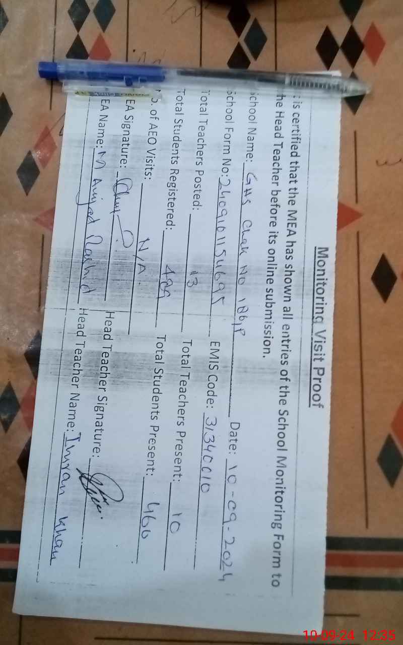 | EMIS Code: 31340010 | Name of School: GHS CHAK 186/P | |||