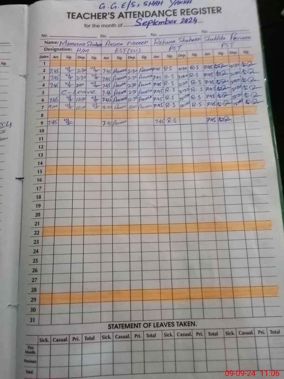 | CNIC | Full Name | Designation | R/C | Absence During Last Calender Month |