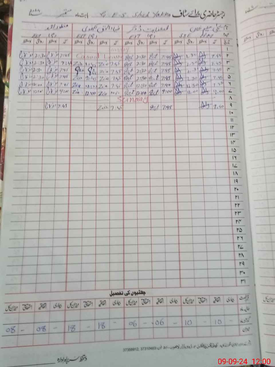| CNIC | Full Name | Designation | R/C | Absence During Last Calender Month |