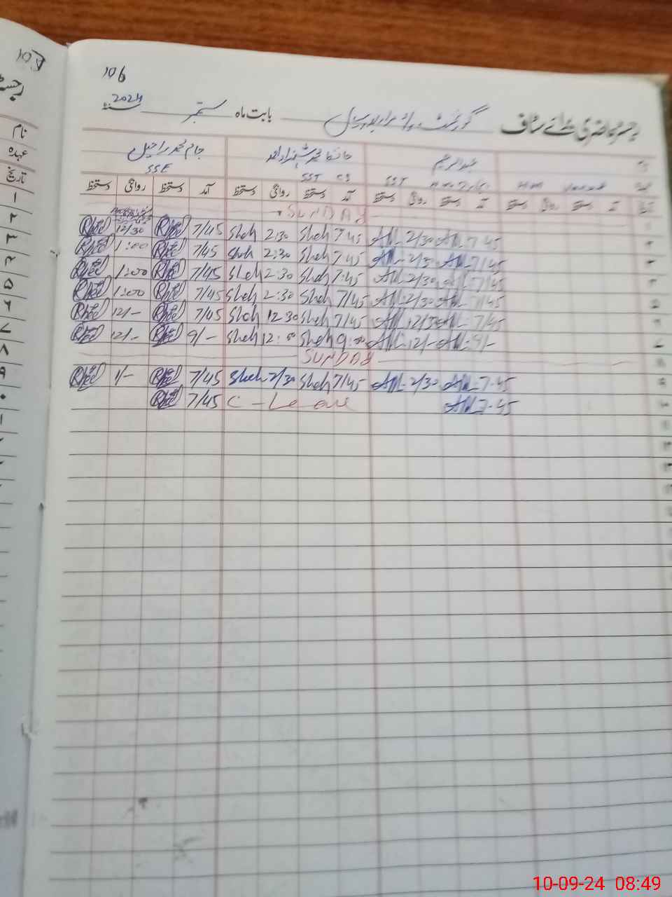 | Leave | Duty | Absent | Maternity | Medical | Ex- Pak |