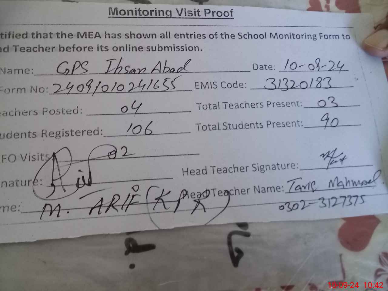| EMIS Code: 31320183 | Name of School: GPS IHSAN ABAD | |||