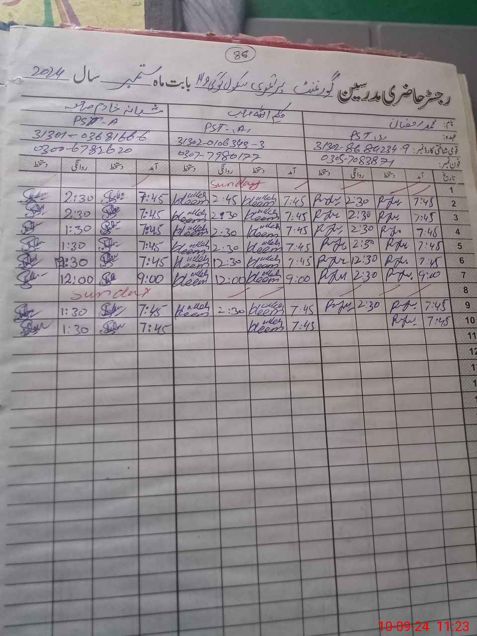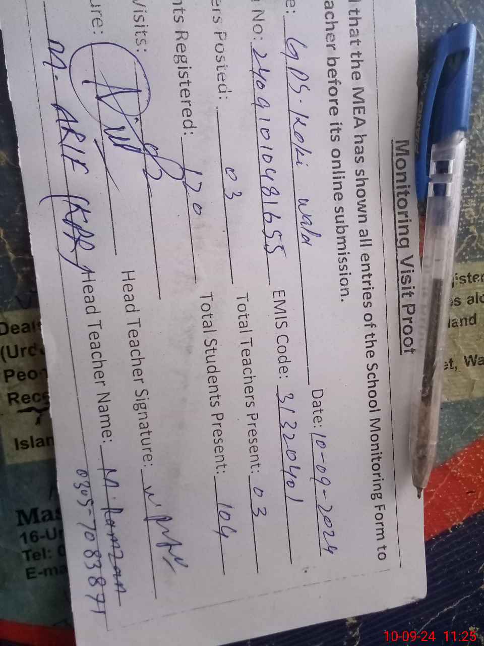 | Name: MU**** RA**** Designation: (School Headmaster's/Headmistress's) PST/PTC/JV Phone/Cell Number: 03**** |