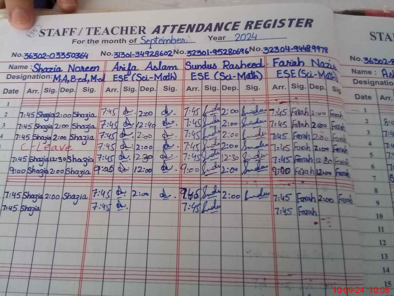 | CNIC | Full Name | Designation | R/C | Absence During Last Calender Month |