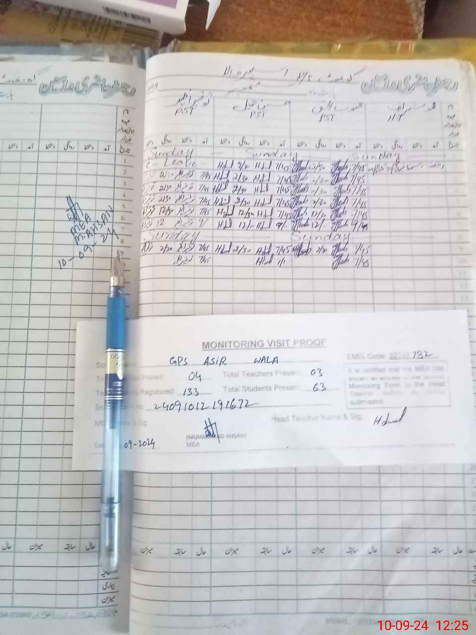 | Attendance Register | Head Teacher | MEA with School | Visit Proof |