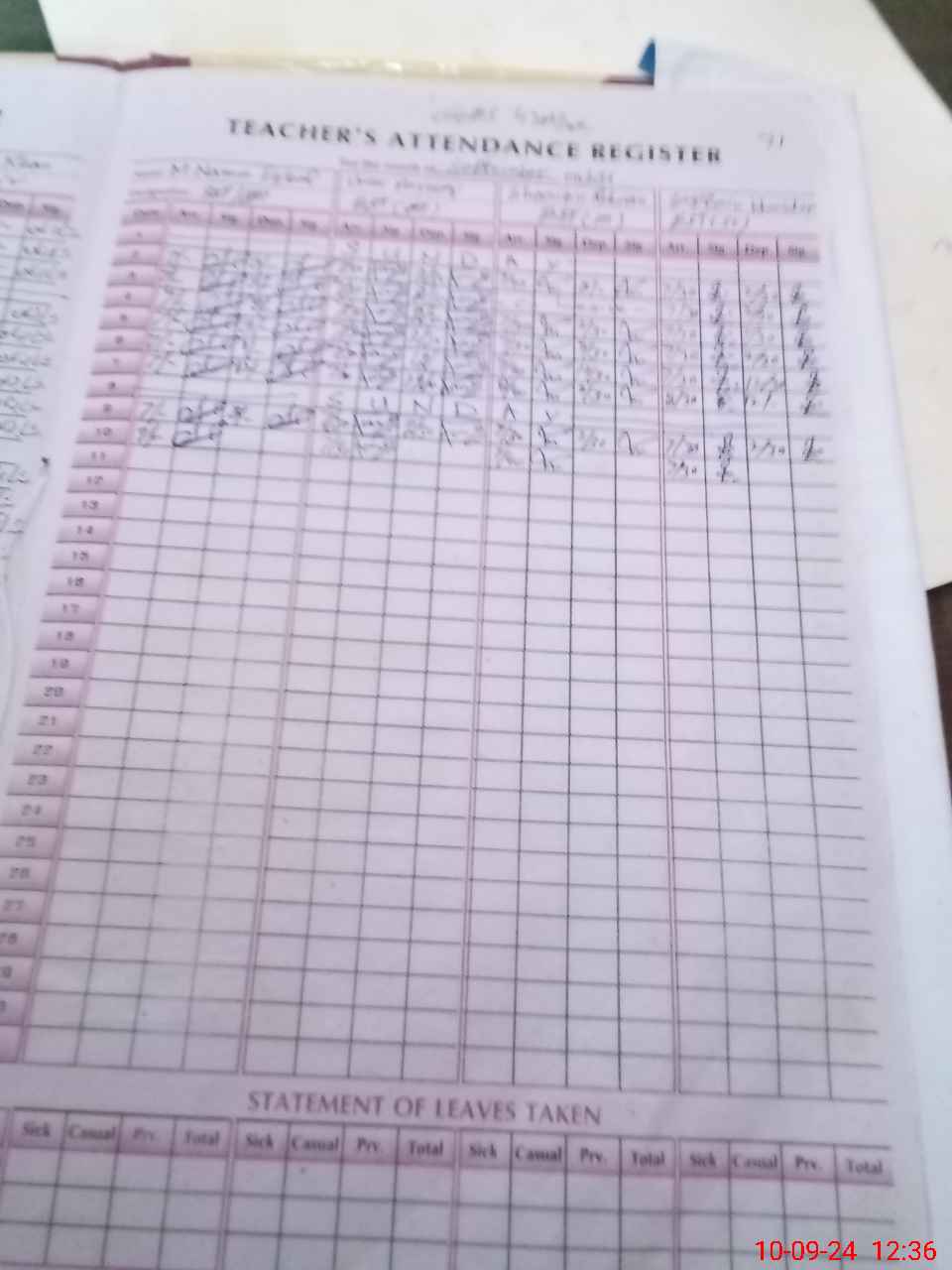 | Leave | Duty | Absent | Maternity | Medical | Ex- Pak |