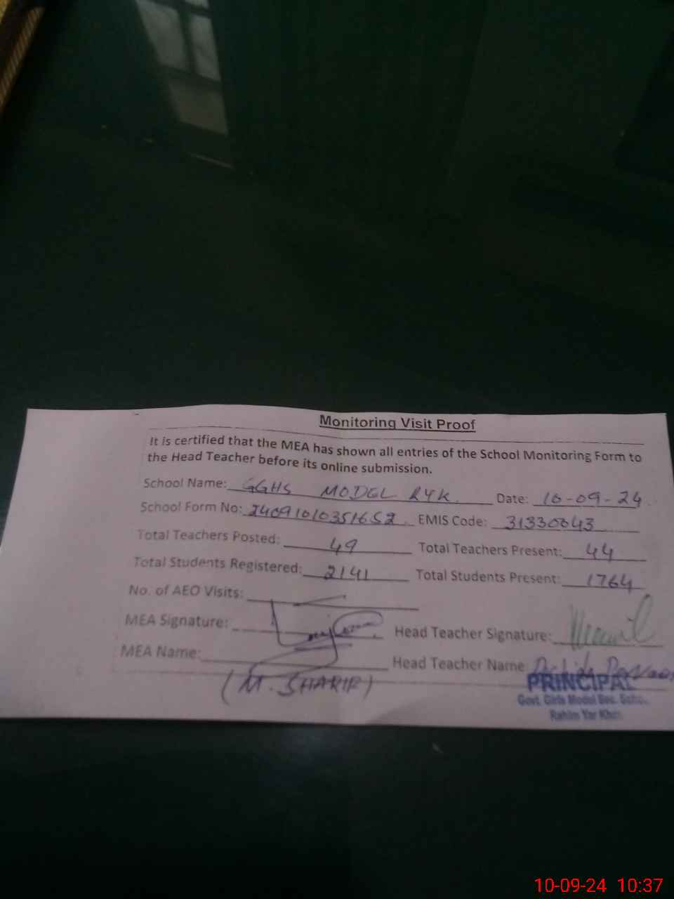 | Certified that this School was Inspected by the Undersigned MEA/DMO Today and the Information Stated Above is as Per Record. | |||||