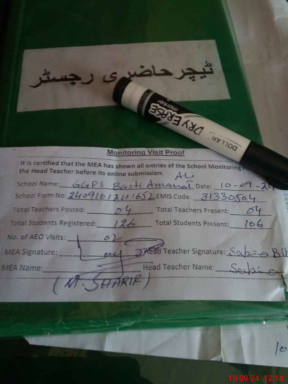 | EMIS Code: 31330504 | Name of School: GGPS BASTI AMANAT ALI | |||