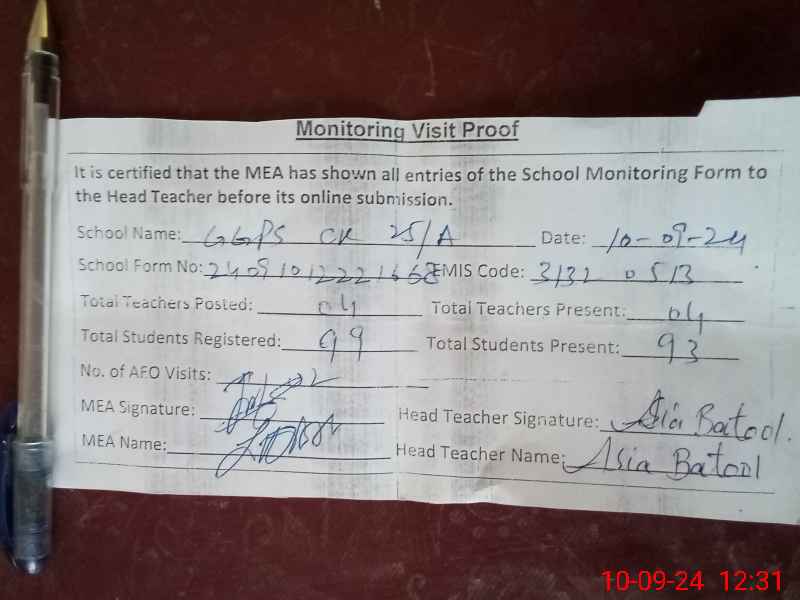 | EMIS Code: 31320513 | Name of School: GGPS CHAK NO.25/A | |||