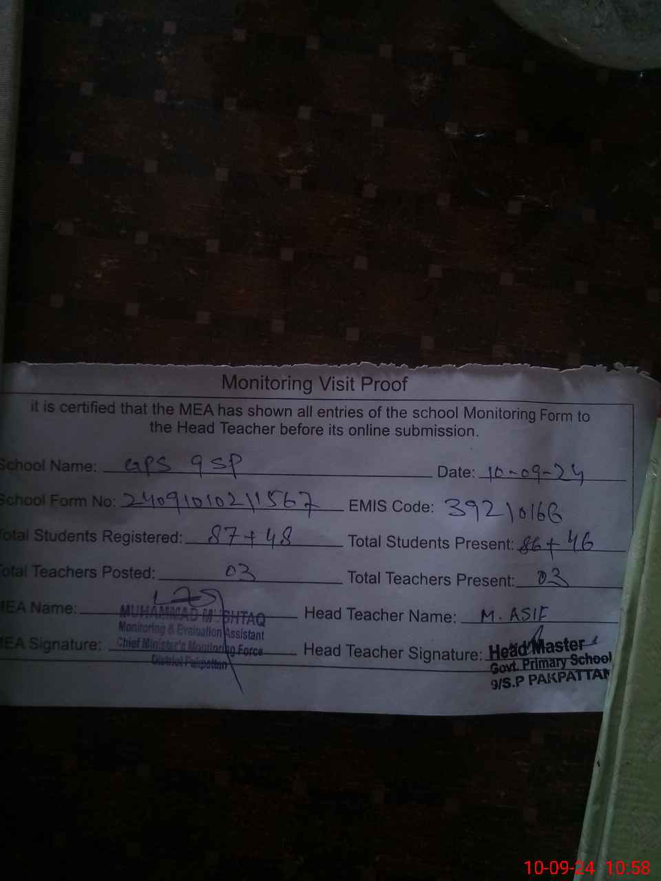 | EMIS Code: 39210166 | Name of School: GPS 9 SP | |||