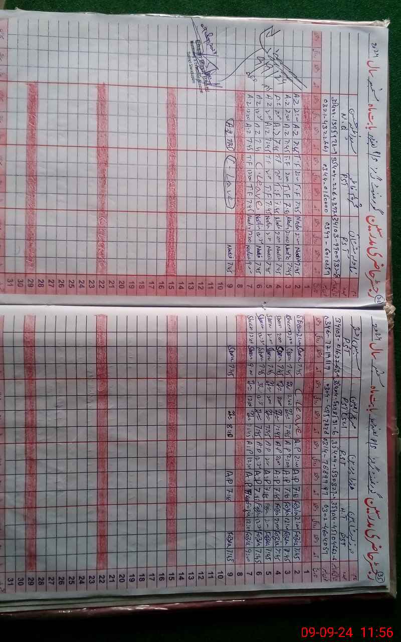 | CNIC | Full Name | Designation | R/C | Absence During Last Calender Month |