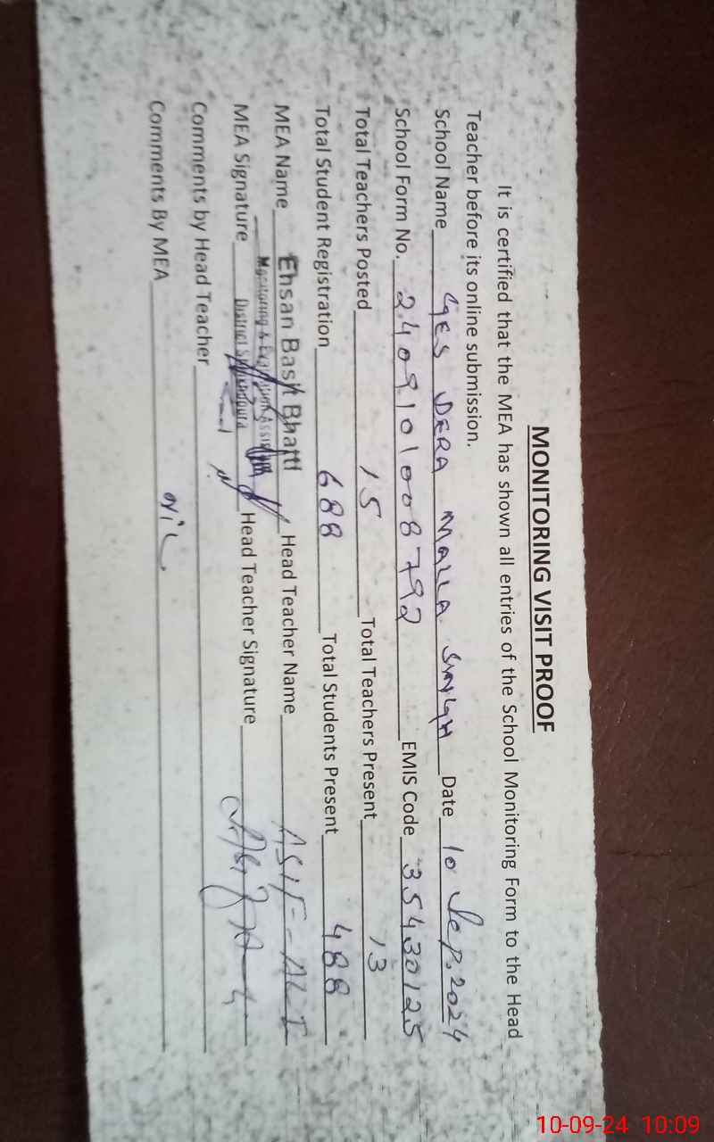 | EMIS Code: 35430125 | Name of School: GES DERA MALLA SINGH | |||