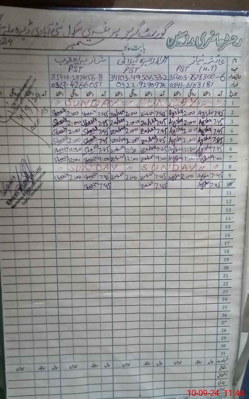 | Name: AY**** NI**** Designation: (School Headmaster's/Headmistress's) PST Phone/Cell Number: 03**** |