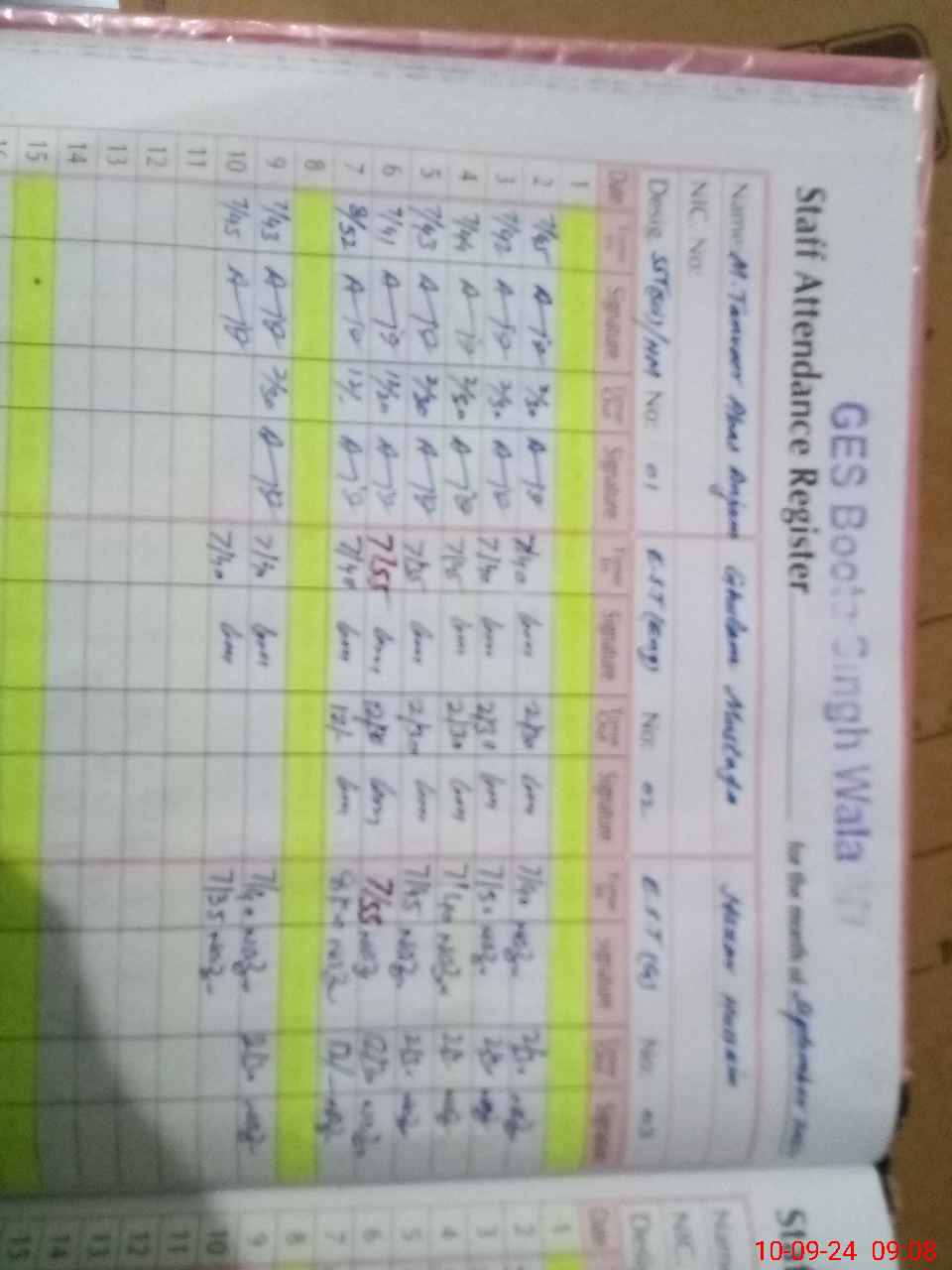 | CNIC | Full Name | Designation | R/C | Absence During Last Calender Month |