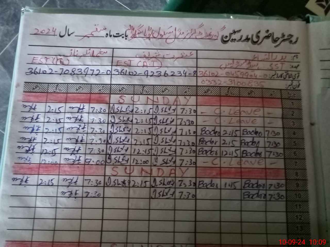 | CNIC | Full Name | Designation | R/C | Absence During Last Calender Month |