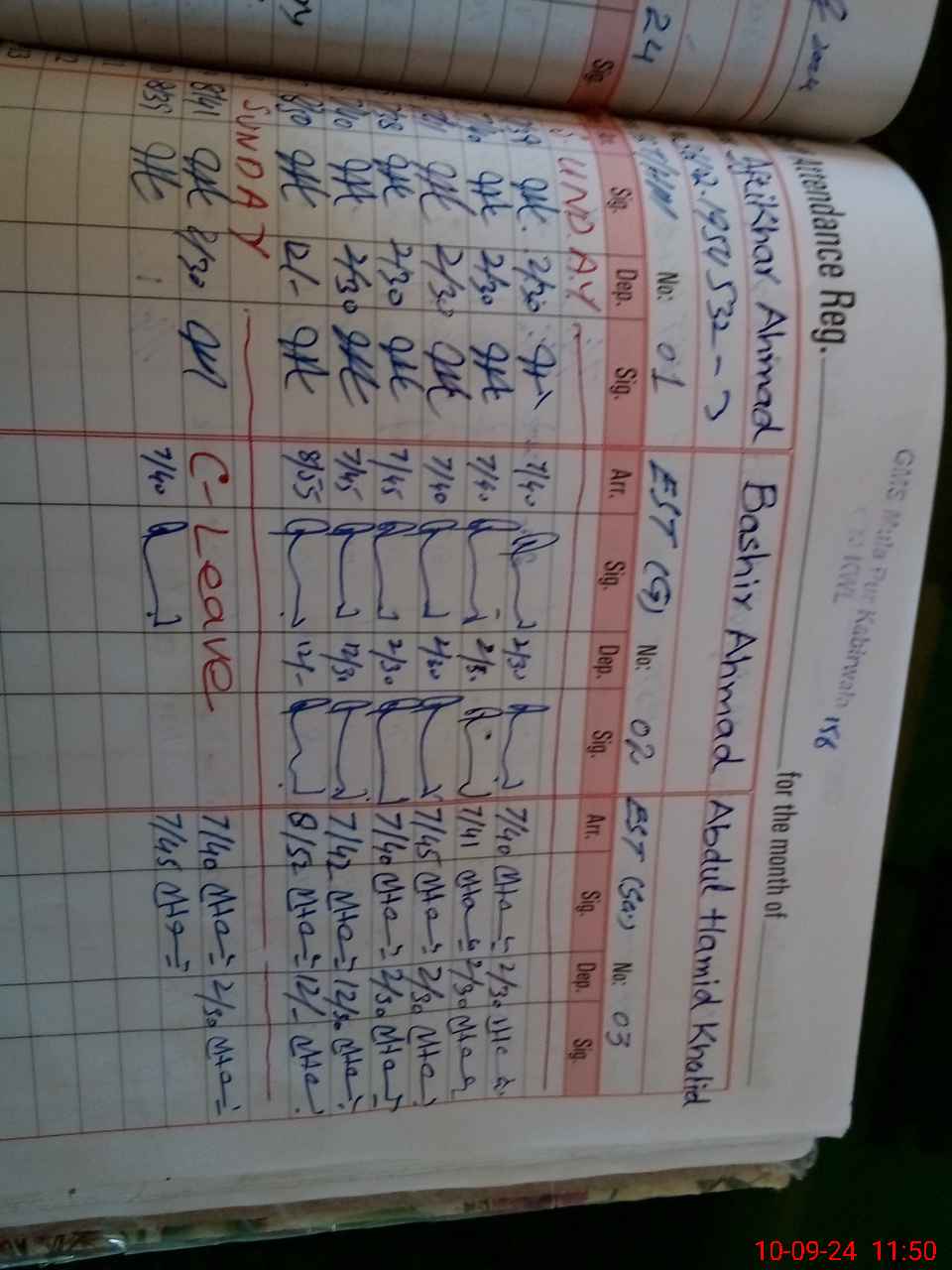 | CNIC | Full Name | Designation | R/C | Absence During Last Calender Month |