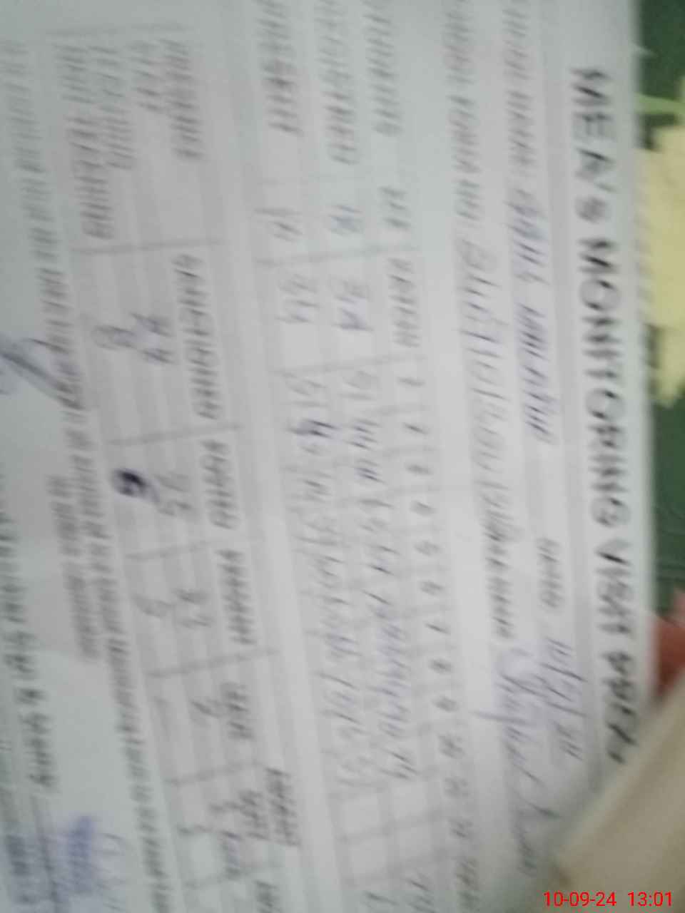 | Monitoring Date: 10-09-2024 | Start Time: 10-09-2024 11:51 AM | End Time: 10-09-2024 01:04 PM | Name of MEA: SH**** AH**** | |