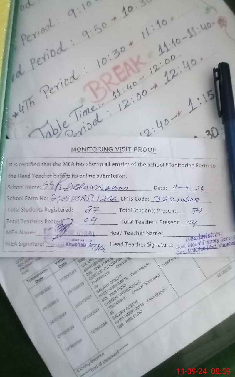 | EMIS Code: 38210628 | Name of School: GGPS DERA MOLADAD | |||