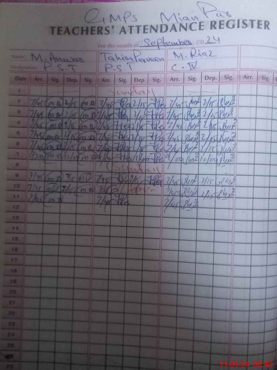 | Monitoring Date: 11-09-2024 | Start Time: 11-09-2024 08:30 AM | End Time: 11-09-2024 09:21 AM | Name of MEA: Is**** Me**** | |