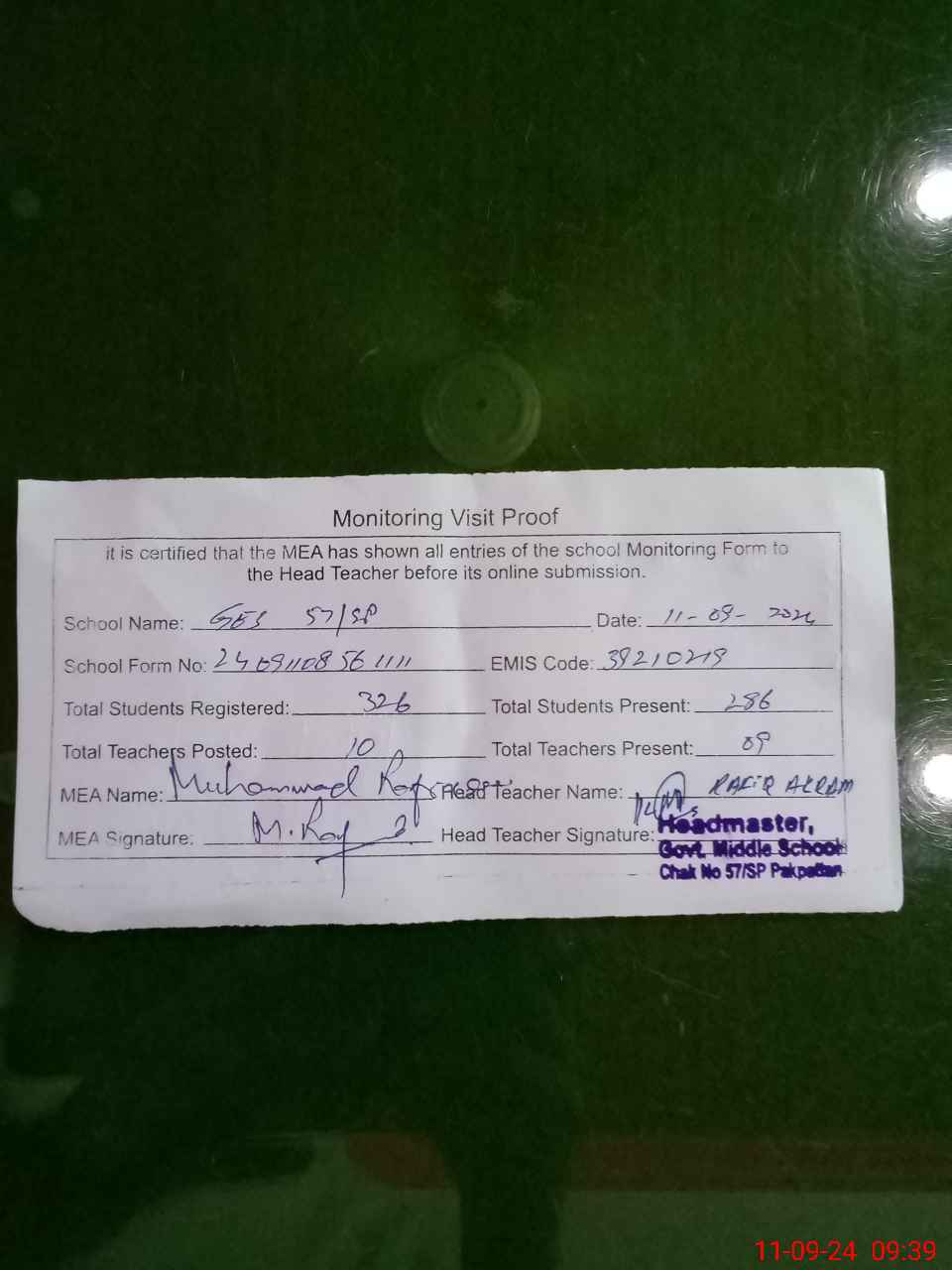 | EMIS Code: 39210219 | Name of School: GES CHAK NO. 57 SP | |||