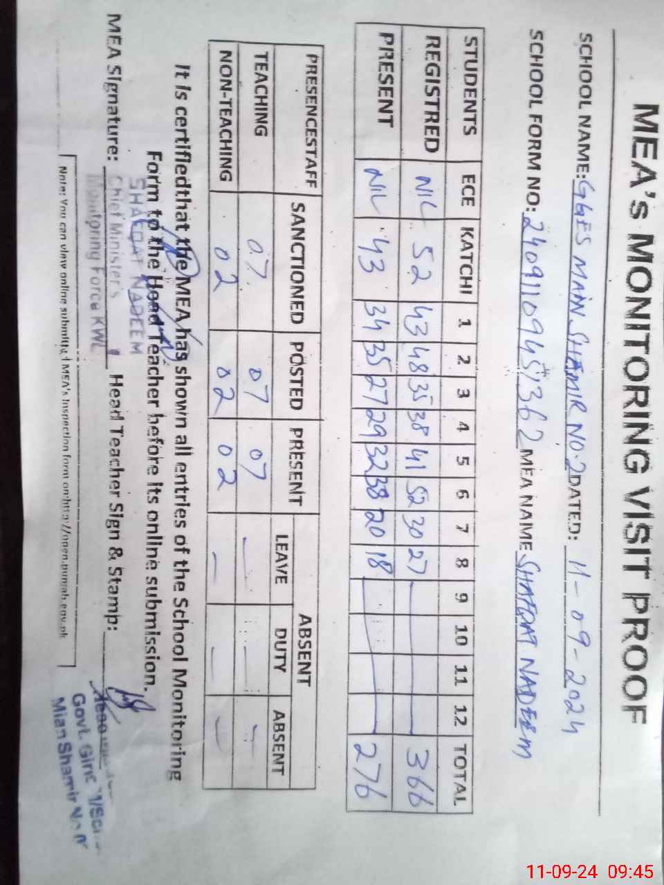 | EMIS Code: 36420405 | Name of School: GGES MIAN SHEMIR NO.2 KHANEWAL | |||