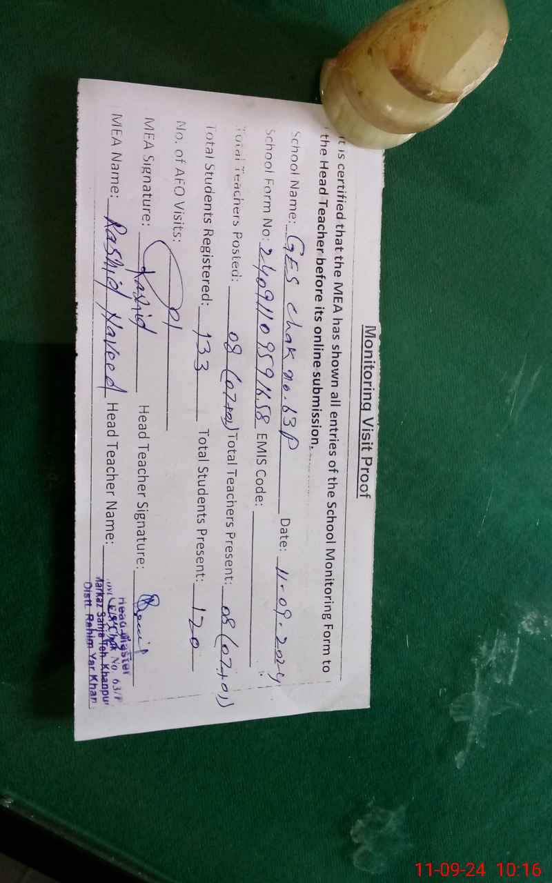 | EMIS Code: 31310061 | Name of School: GES CHAK NO 63/P | |||