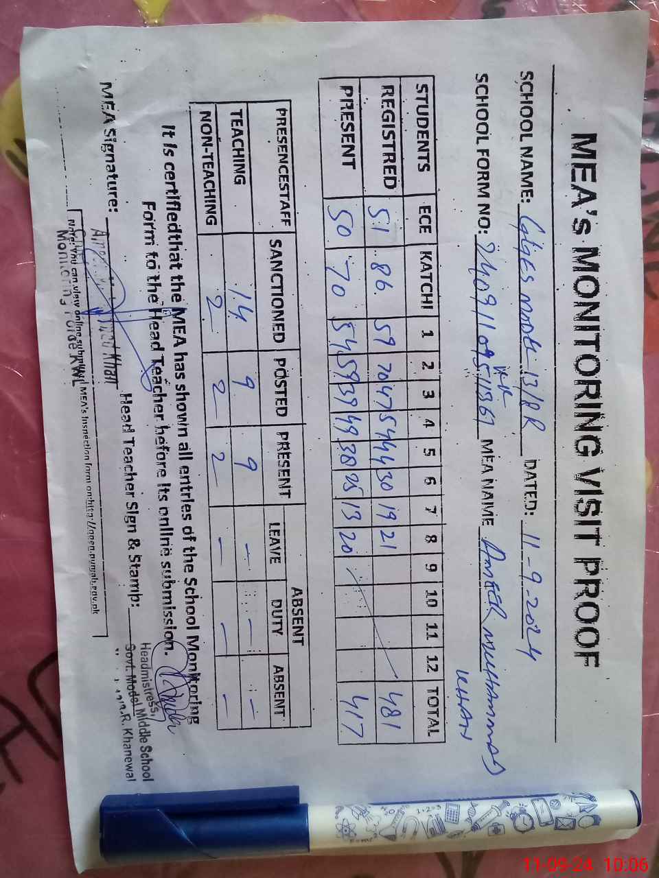 | Monitoring Date: 11-09-2024 | Start Time: 11-09-2024 09:05 AM | End Time: 11-09-2024 10:21 AM | Name of MEA: Am**** Mu**** Kh**** | |