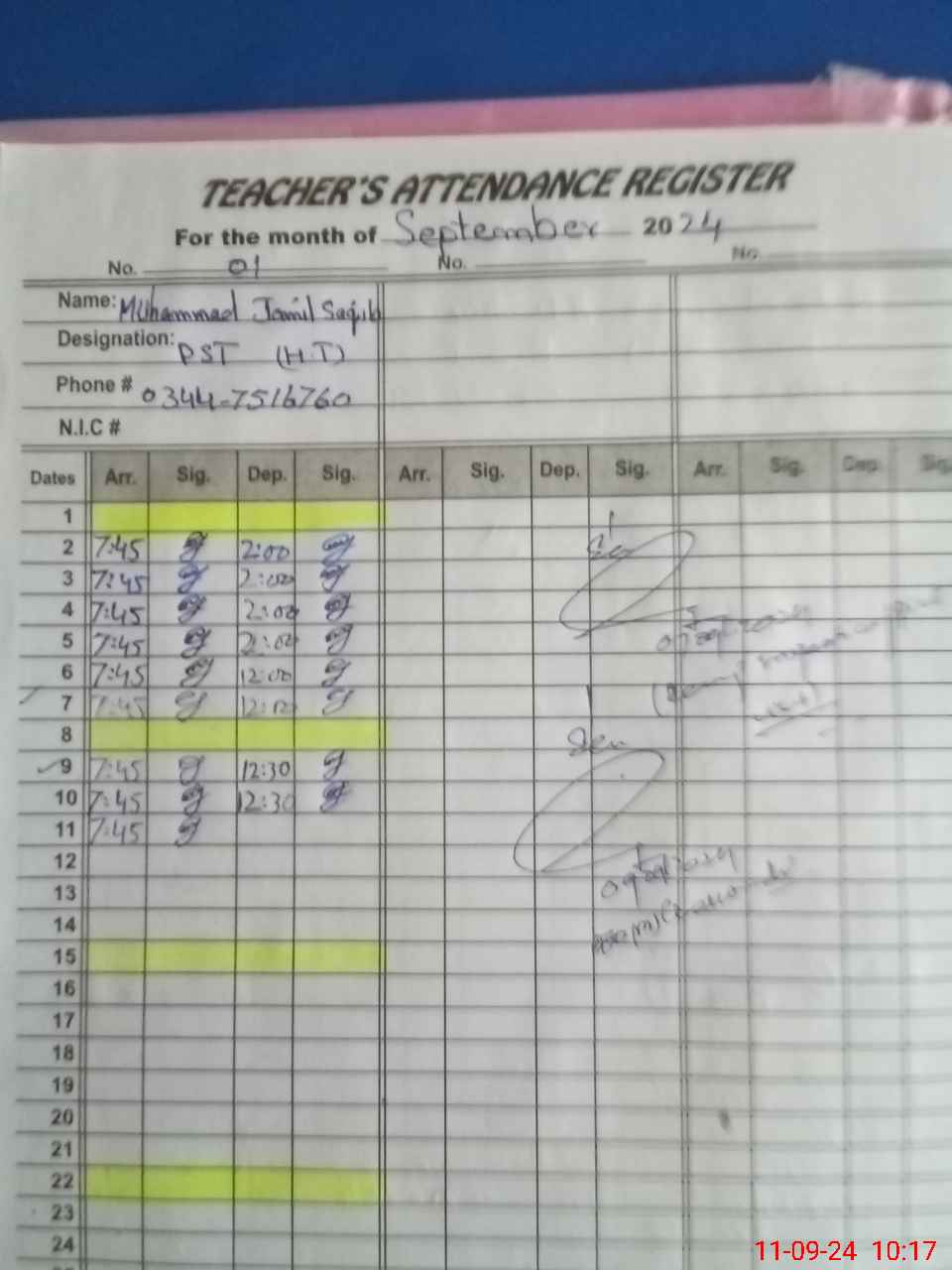 | Name: HA**** AB**** R,**** Designation: (School Headmaster's/Headmistress's) Headmaster Phone/Cell Number: 03**** |