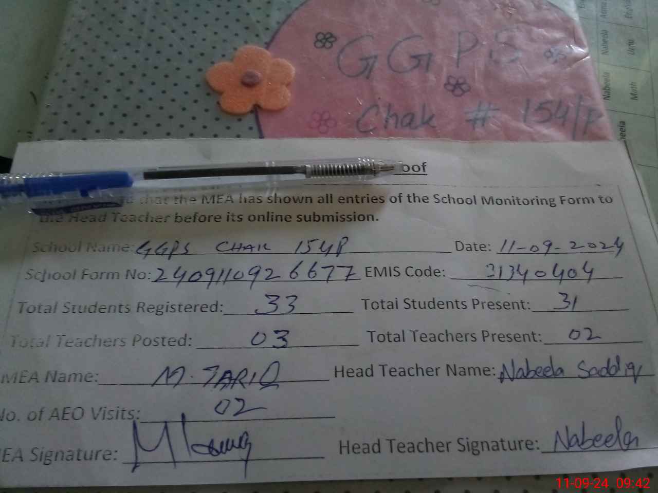 | EMIS Code: 31340404 | Name of School: GGPS CHAK NO.154/P | |||