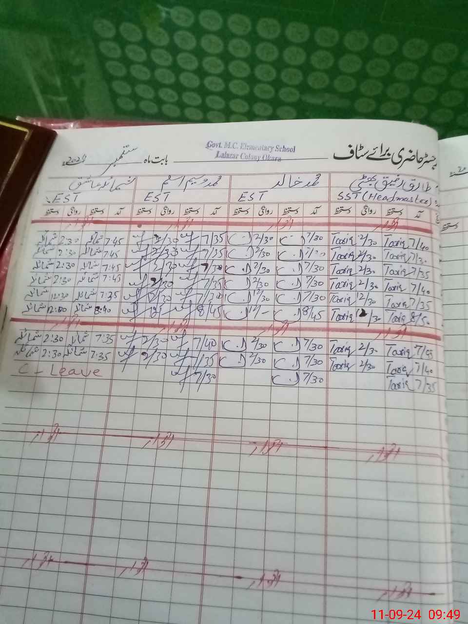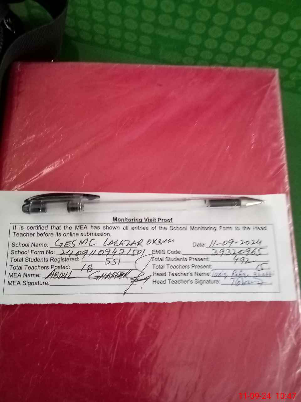 | Attendance Register | Head Teacher | MEA with School | Visit Proof |