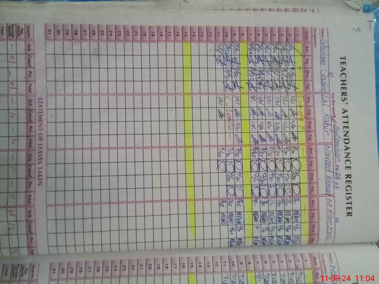 | CNIC | Full Name | Designation | R/C | Absence During Last Calender Month |